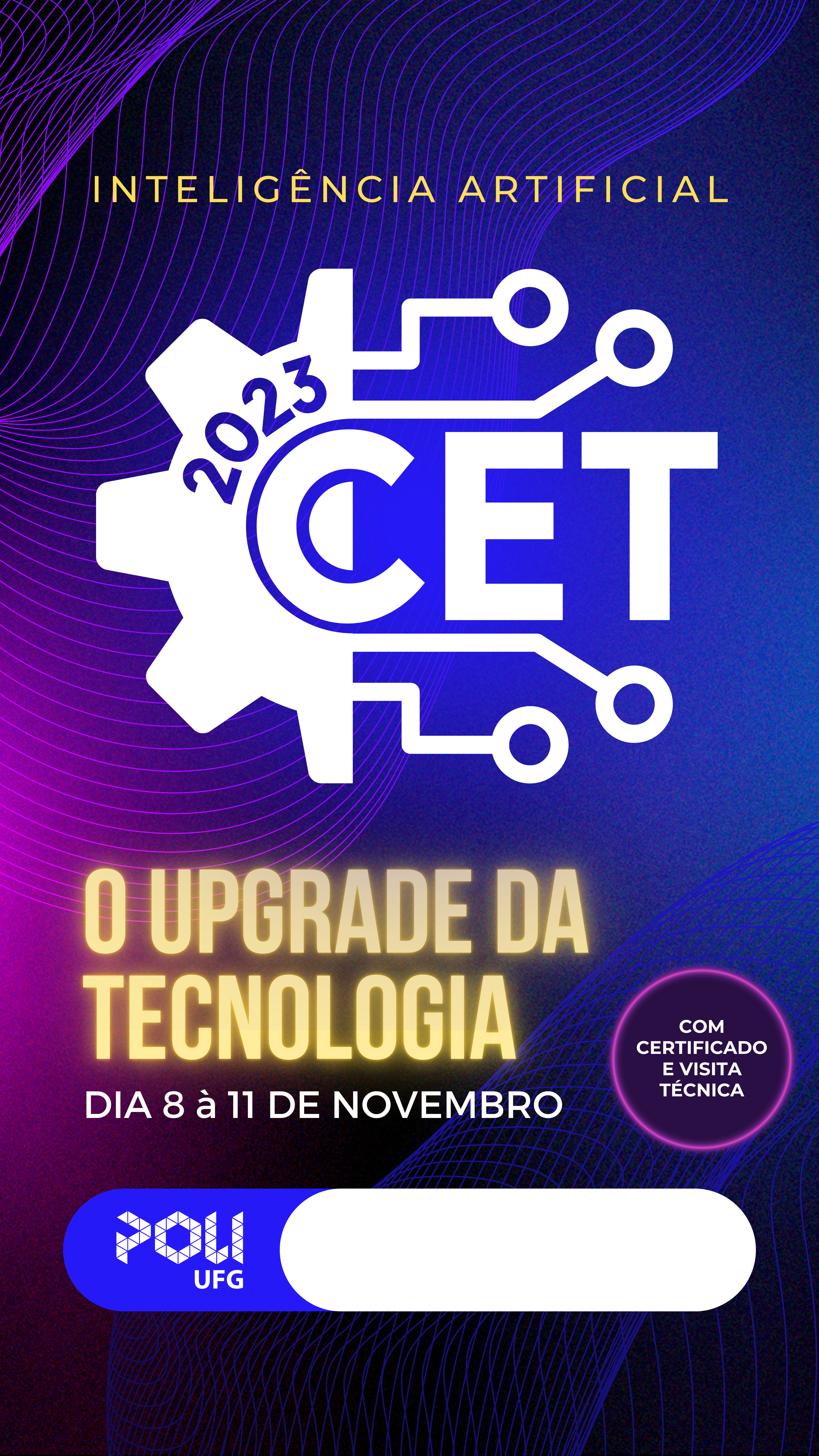 No período de 08 a 11 de novembro, a Agremiação Politécnica da UFG (POLIUFG) organizará o Congresso de Engenharia e Tecnologia, edição 2023 (CET-2023) com o tema: “Inteligência Artificial (IA).